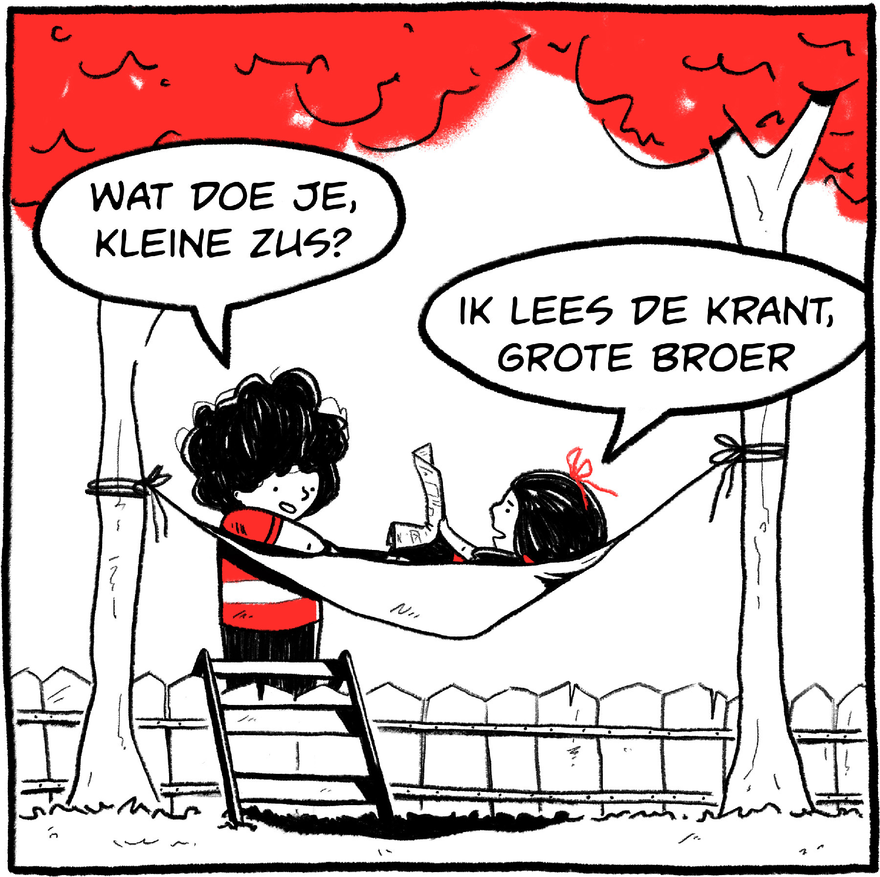 Onlangs stuurde ik zeven dagen lang elke dag een Grote broer & kleine zus de wereld in. Uit de reacties op de strip merkte ik dat hij écht graag gelezen werd. Sommige mensen lieten me zelfs weten dat ze er hun dagelijks koffiemomentje van maakten. Je hebt er geen idee van hoe leuk ik dat vond.